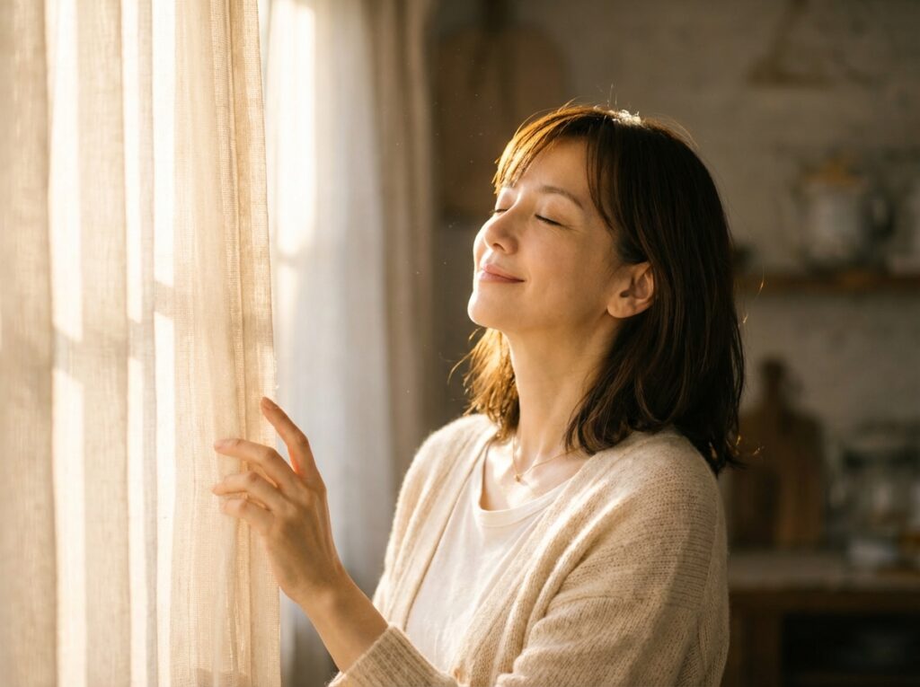 - 朝カーテンを開ける